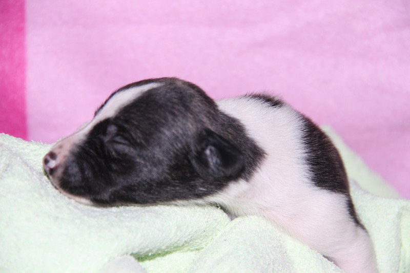 Sie ist eine sehr kräftige Hündin mit sehr schöner Fellzeichnung.