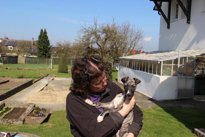 Abschied vom Züchterfrauchen in der Sonne. Auch Eros ist gut in seinem neuen Zuhause angekommen und hat dort schon alles erkundet.