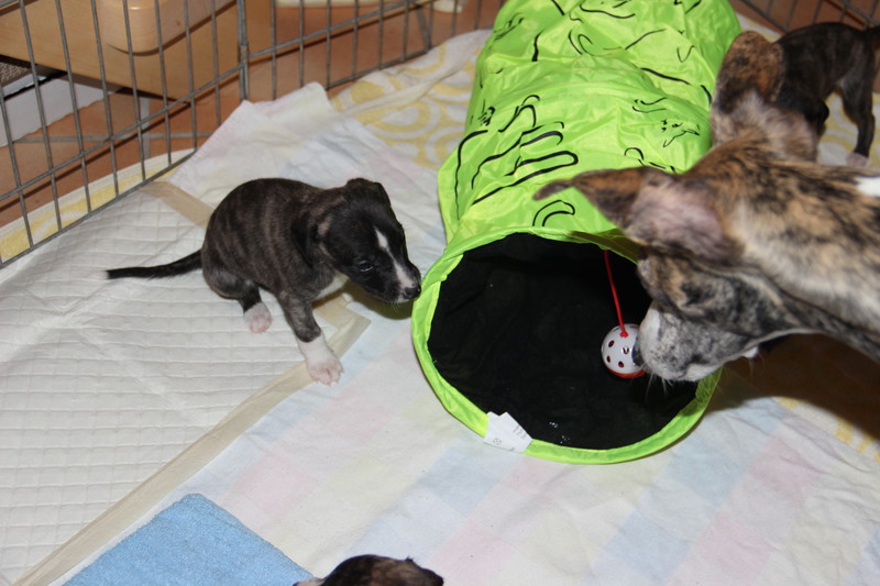 Lorina besucht die Welpen. Wir sagen Tschüss, bis nächste Woche. Wir wünschen noch einen schönen restlichen Sonntag, auch wenn es nur regnet und stürmt.