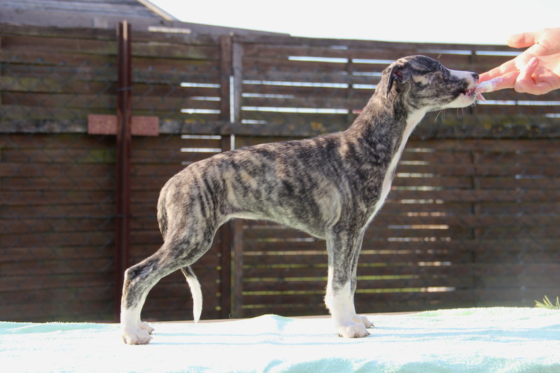 Sie macht vor wie man schön steht.Und will einmal in die Fußstapfen von Mama treten. Eine sehr schöne harmonisch aufgebaute Hündin.