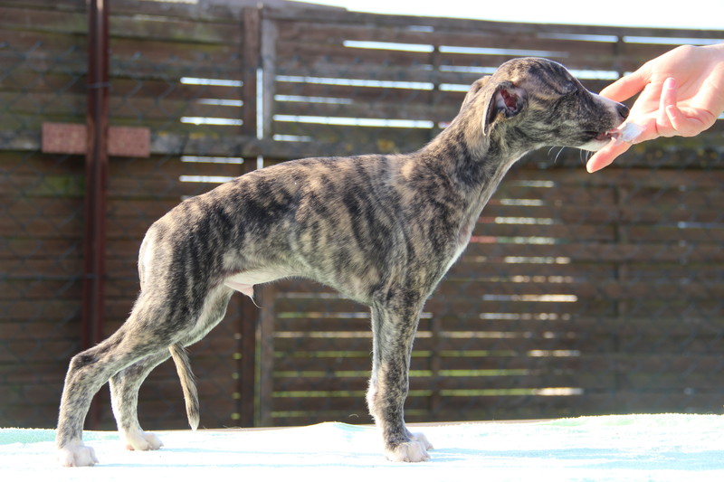 Kiano ist der Zwilling von Elisabeth. Ein sehr harmonisch aufgebauter Rüde mit einem langen Schwanenhals. Auch er ist ein schmusiger kleiner Kerl und schläft gerne auf dem Schoss.