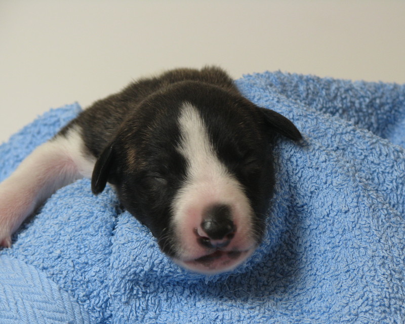 Hündin Nr. 1 Eine sehr kräftige Hündin, deren Nasenspiegel schon gleich bei der Geburt schwarz war.