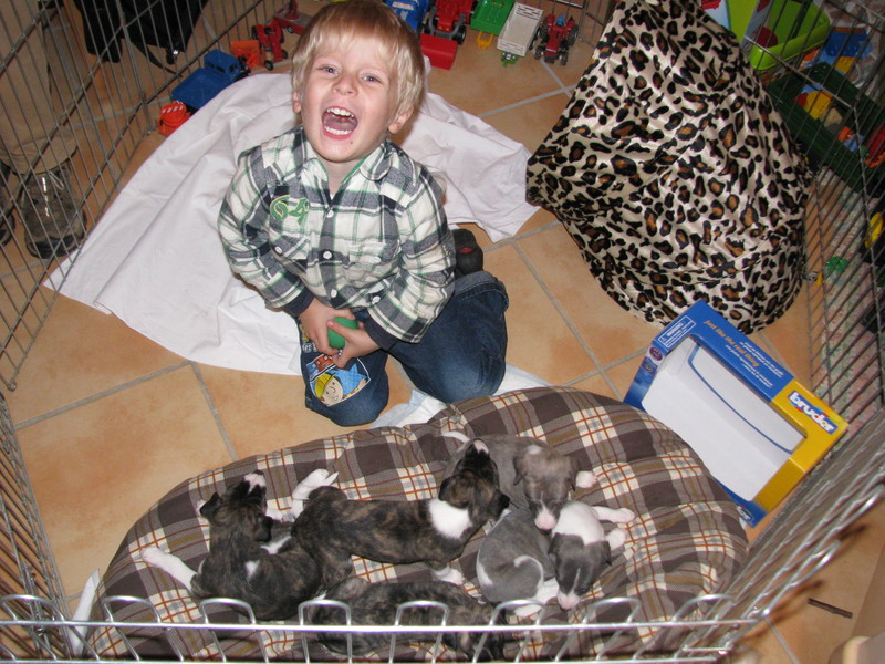 Die Welpen besuchen uns jetzt zeitweise im Wohnzimmer. Da ist es immer lustig und sie lernen verschiedene Alltagssituationen kennen.