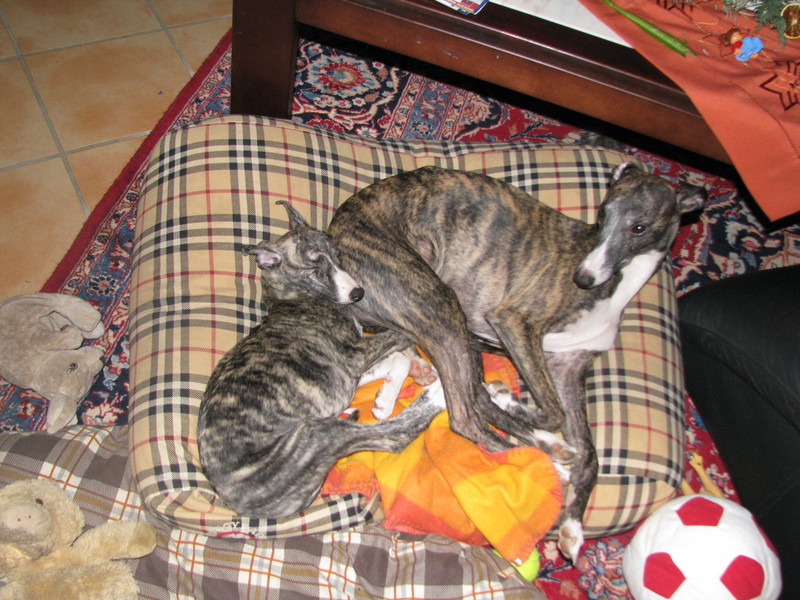 Cosina und Aylin im Wohnzimmer beim Kuscheln.