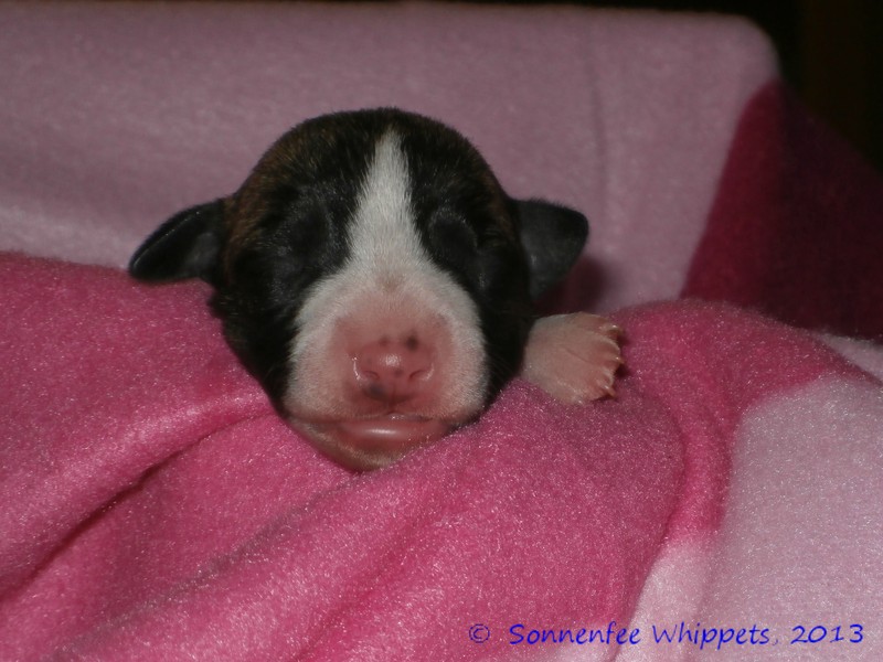 Rüde Nr. 7 er ist ein hell gestromter Bub mit schöner weißer Blesse und einem mini Abzeichen im Nacken.