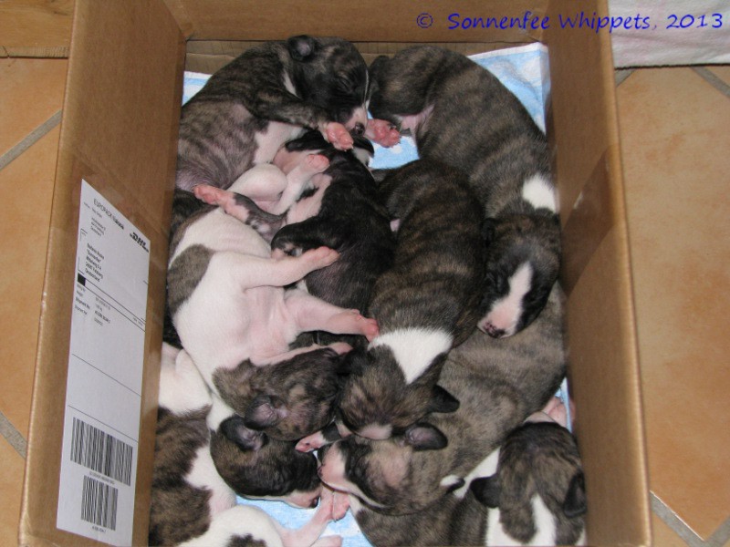Wenn unser Bett saubergemacht wird, schlafen wir im Karton.