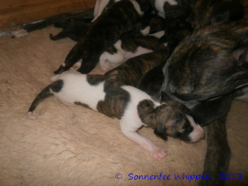 Hier sieht man den Rüden Nr. 9 mit seinen Geschwistern und seiner Mama Aylin.